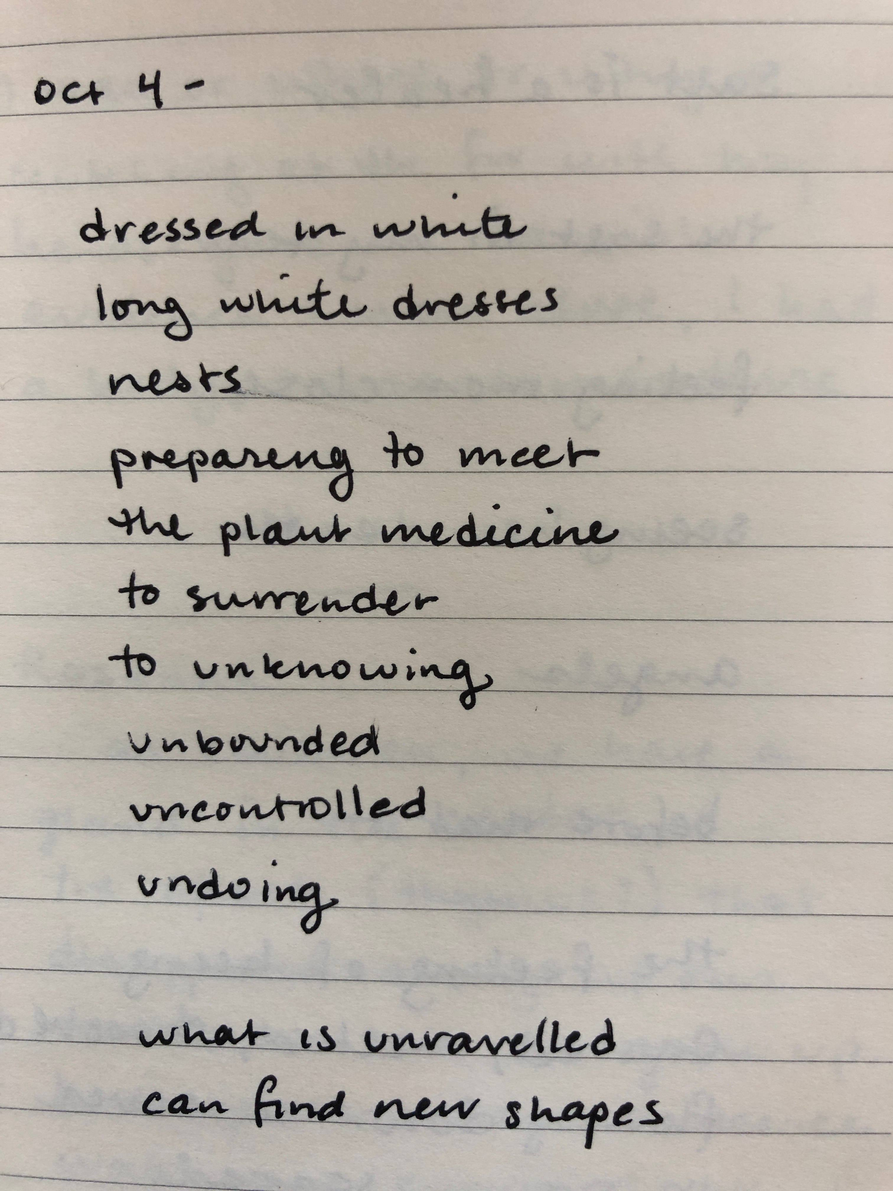 Three weeks ago, Peter and I drove a few hours away to join a Brazilian couple sharing the ritual of Ayahuasca. We were invited by a friend in their community, and Peter had been once before and wanted me to experience it with him. I was a little scared.